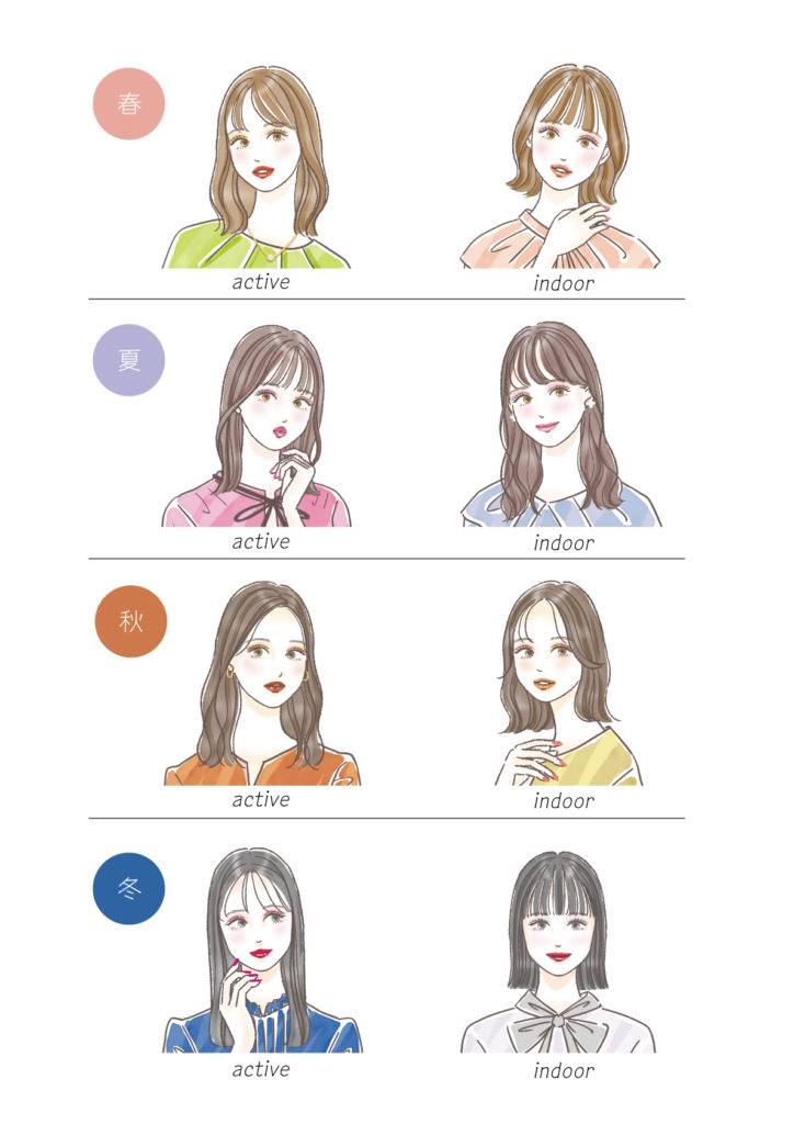 パーソナルカラー×性格 秋冬トレンドコスメ診断 WORK 2025.11.25 日本最大級のコスメ・化粧品・美容の総合情報サイト@cosmeにて『\簡単1分で診断!/パーソナルカラー×性格秋冬トレンドコスメ診断🔍』のイラストを描かせていただきました。 パーソナルカラー、春・夏・秋・冬、それぞれアクティブ系とインドア系の2種のイラストです。 今回はコスメ診断ということで、バストアップのイラストです。それぞれの特徴を元に描かせていただきました。